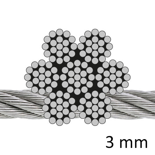 Nirodrahtseil 7 x 19 (hoch flexibel) 3mm Edelstahl A4, AISI 316
